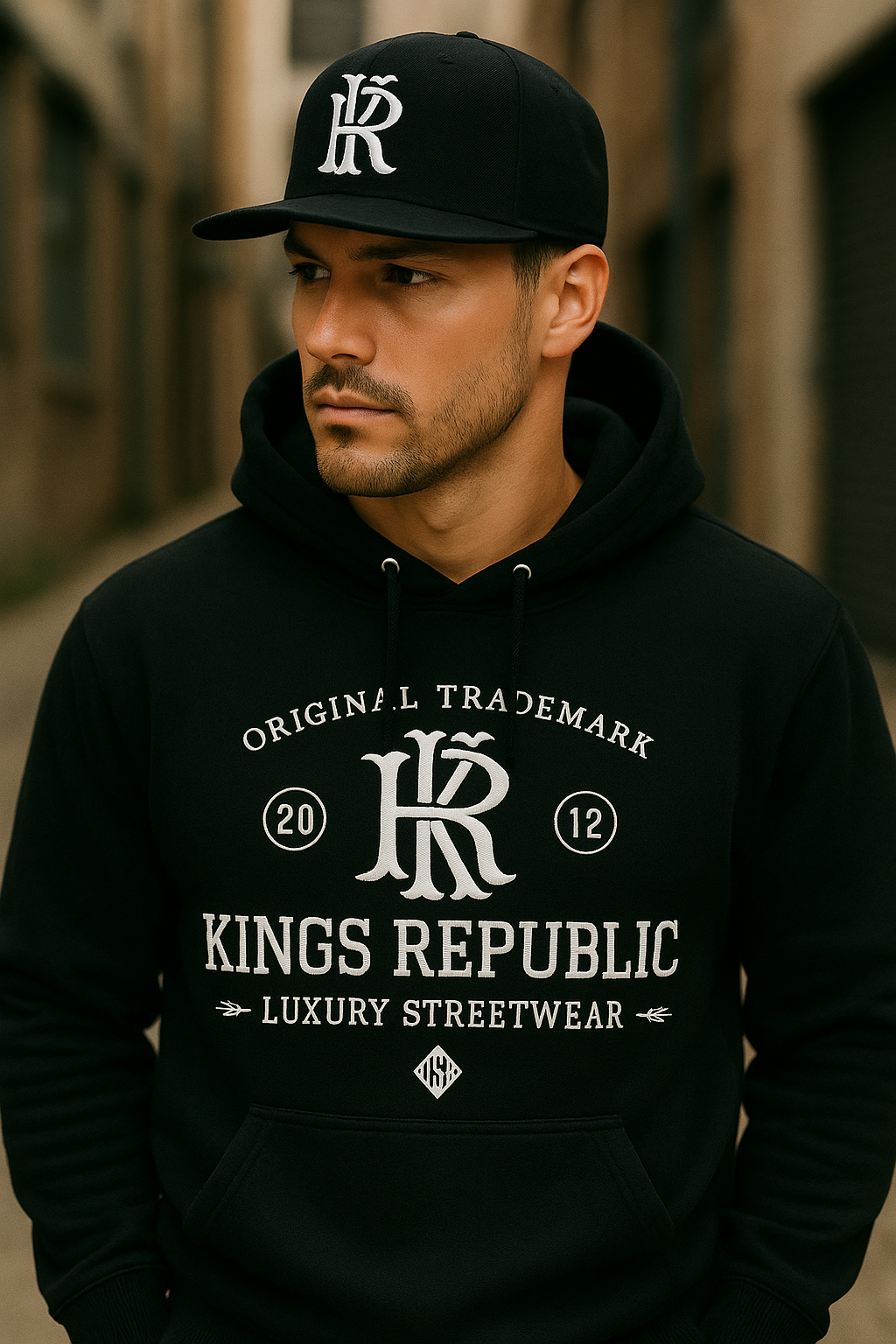 The Kings Original collection represents the purest expression of Kings Republic — where timeless craftsmanship meets elevated street culture. Designed for leaders, creators, and innovators, this featured edition blends premium materials with bold embroidered detailing, showcasing the signature KR monogram and the iconic Original Trademark crest.
