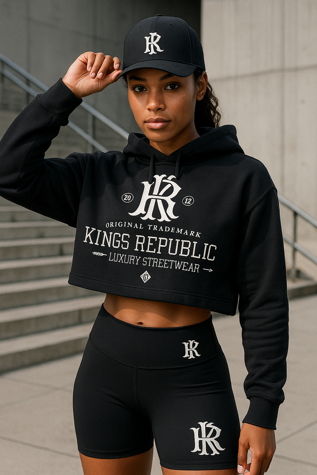 Every piece in this collection carries the Kings Republic Crest, a powerful emblem built from crowns, shields, intertwined KR lettering, and crossed blades—symbols of strength, honor, and the relentless pursuit of greatness. Inspired by classic varsity heritage and the refinement of global luxury houses, this collection redefines what modern royalty looks like in the streets.