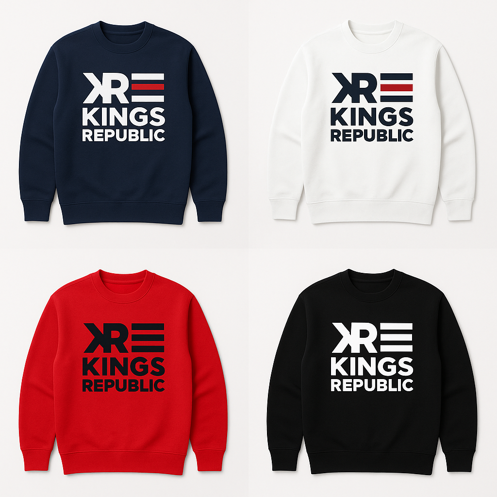 Every piece in this collection carries the Kings Republic Crest, a powerful emblem built from crowns, shields, intertwined KR lettering, and crossed blades—symbols of strength, honor, and the relentless pursuit of greatness. Inspired by classic varsity heritage and the refinement of global luxury houses, this collection redefines what modern royalty looks like in the streets.